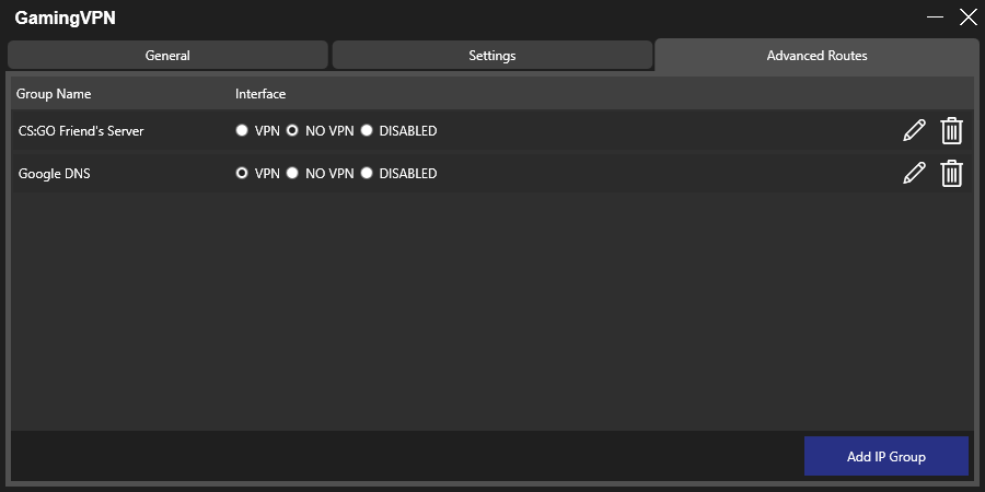 - Create custom VPN connections on a per-game server basis.
